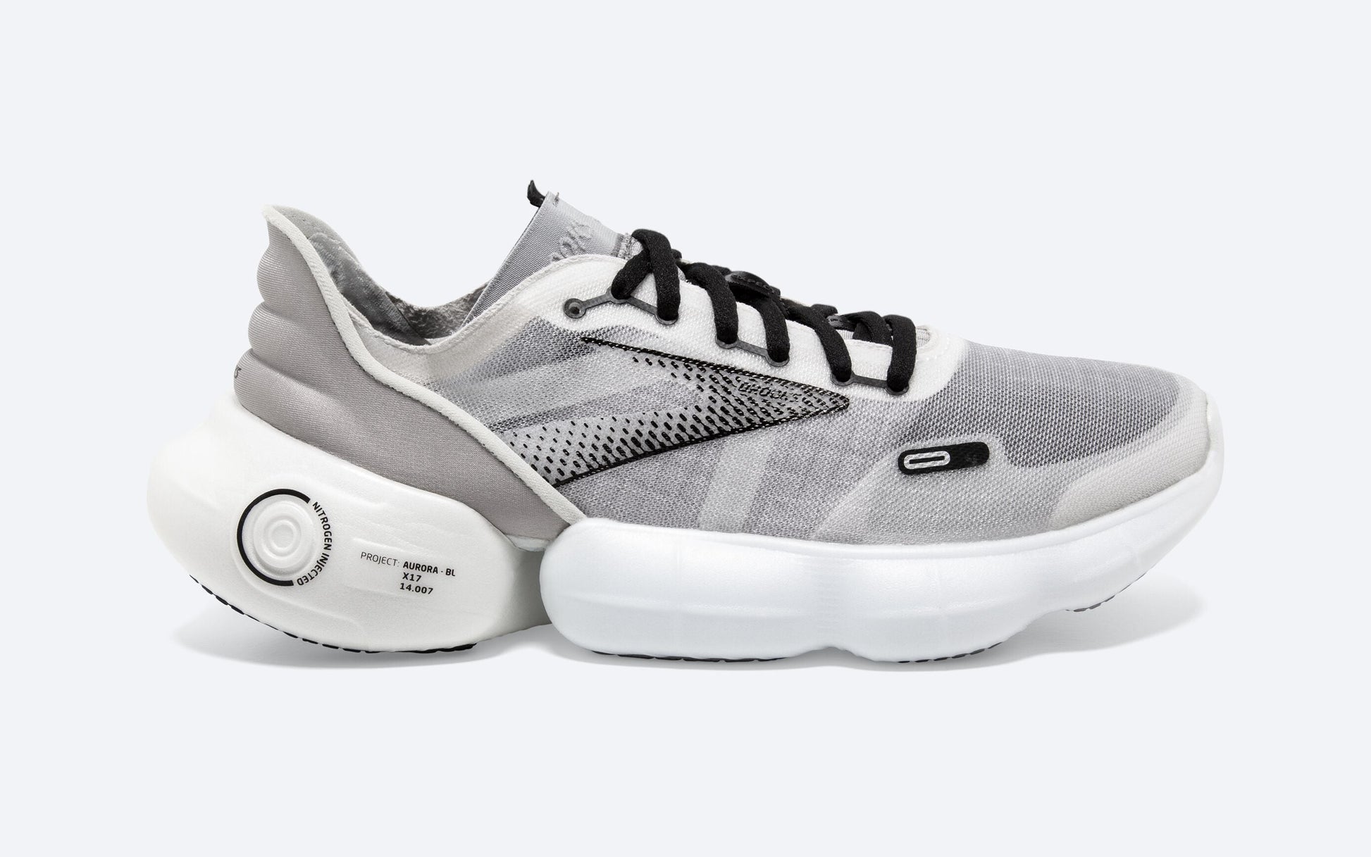 Women's Brooks Aurora, White/Alloy/Black, 9 B Medium