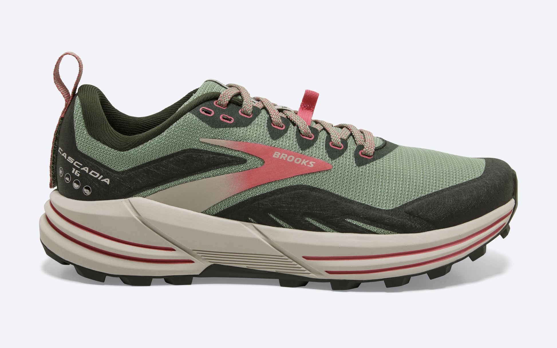Women's Brooks Cascadia 16, Basil/Duffel Bag/Coral, 6.5 B Medium